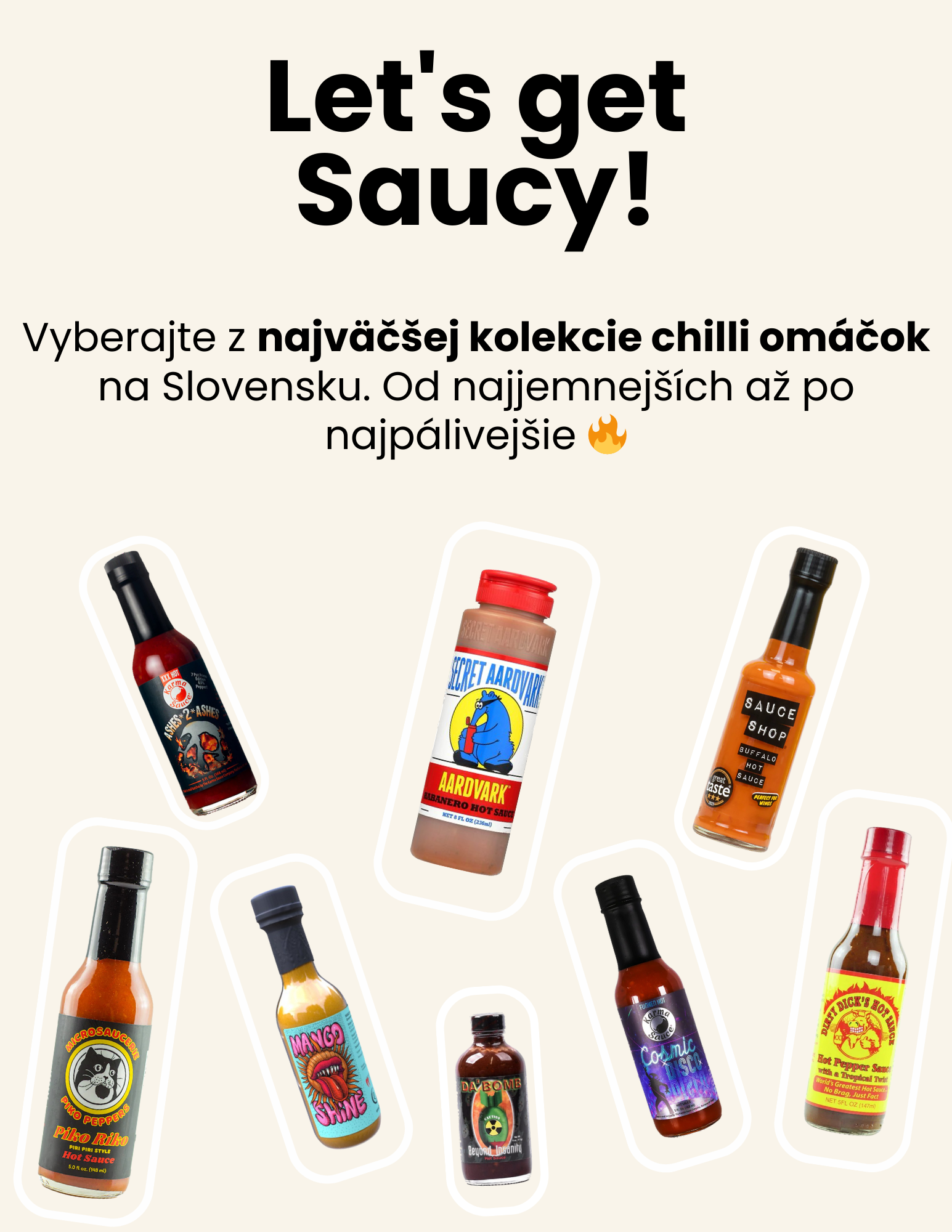 Špecializujeme sa na prémiové pálivé omáčky. Saucy ti prináša výber tých najlepších chilli omáčok na trhu. Každú chilli omáčku sme otestovali a zvážili, či ti ju ponúkneme. U nás nemôžeš šliapnuť vedľa. Vyber si z menej pálivých, krásne ovocných alebo tých najpálivejších omáčok pre naozajstných fajnšmekrov! Veríme, že si u nás vyberie naozaj každý. Výber omáčok chceme ďalej rozširovať, preto ak sami nejaké omáčky vyrábaš alebo máš svoju obľúbenú značku, ktorú neponúkame, budeme veľmi radi, keď nám dáš echo, aby sme ich mohli tiež vyskúšať a prípadne zaradiť do eshopu. Ako radi hovoríme, žiadne dve omáčky nie sú rovnaké a všetky stoja za ochutnávku!